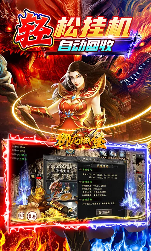 御龙城堡最新手机版是一款福利传奇手游。上线送灵宠红包,挂机可完成任务冒险。小怪能刷装备得仙玉换神器,有多种灵宠及特色玩法,充值0.05折,打BOSS掉真充卡,福利拉满,助你轻松称霸。