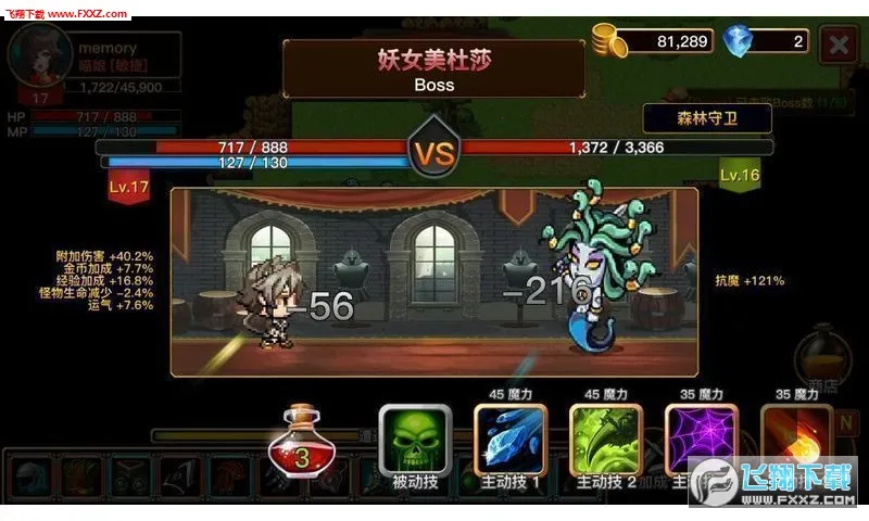 3. 多种战斗方式,包括地牢突袭、像素世界地图战斗,还有与世界各地玩家争夺称号的PVP战斗。
