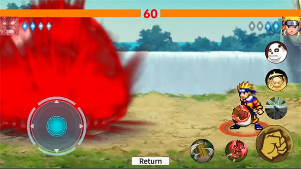 1. 可选择多种火影角色格斗,各角色有独特技能与连招,操作要求不同,无绝对强的角色,全看玩家操作。
