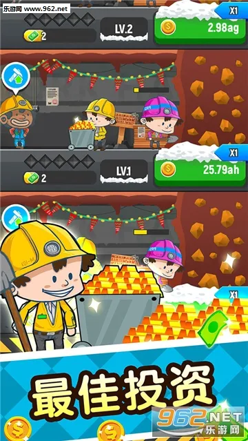 如果你想体验一把当矿业大亨的感觉,那这款游戏绝对适合你!在游戏里,你将扮演矿工,操作简单易上手,把钩子锁定矿产就能脱离获取资金。而且它告别了单纯挖矿,可玩性超高。你能用挖到的资源建矿井、招募矿工、造加工厂,打造各种贵金属,让矿业不断发展壮大。挖矿途中还有惊喜,可能解锁神秘矿洞,挖到宝藏轻松成为大亨。游戏画风精美靓丽,地图和矿工造型都是可爱卡通风,给你清爽舒适的游戏快感。在这里,你可以建立矿井招募矿工一起挖矿,建造加工厂加工贵金属,开设贸易站把产品卖向世界,探索地下矿洞挖掘神秘宝藏。快来下载,开启你的矿业大亨之路,享受独特的游戏乐趣吧!