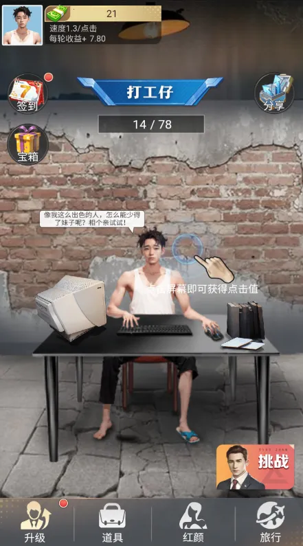 王者打工人免广告版是模拟经营手游,玩家从基层打工起步,通过完成任务、应对突发情况积累财富经验。游戏有多样职业选择,能自由运营店铺、招聘店员,还可炒股创业,通过多种方式快速赚钱,体验逆袭成富豪的过程 。