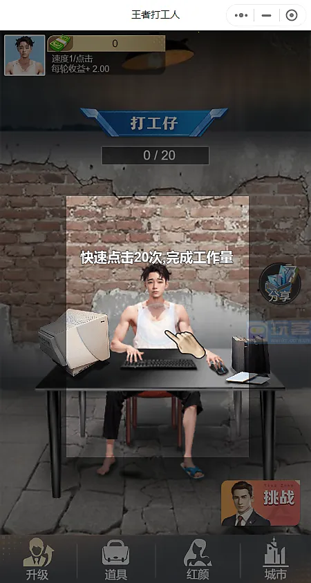 嘿,打工人!想体验逆袭人生吗?《王者打工人》这款游戏绝对能满足你!它是一款模拟打工人逆袭的经营休闲游戏,能让你从默默无闻到成为傲视群雄的 CEO。在这里,你有丰富多样的职业选择,能体验从基层员工到高层管理的全过程,感受职场的酸甜苦辣。游戏高度还原真实职场环境,有打工、升职、炒股、创业、投资等多种经济活动方式。你可以努力提升个人排名,冲击全服打工王者,赢取专属福利。还能探索不同区域解锁新工作场景,挑战更高级任务,灵活应对临时加班等突发情况,考验决策能力。而且赚钱方法多样,比如打保龄球、组装拼车,甚至炒房炒楼。快来下载,开启你的打工逆袭之路,书写属于自己的辉煌篇章!