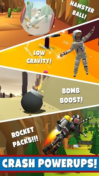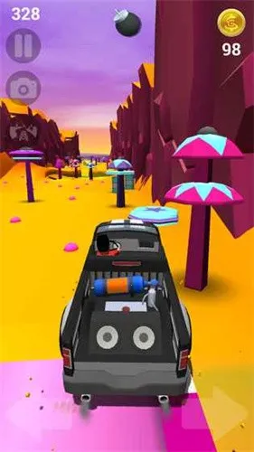 2. 丰富道具与解锁:过程中可拾取导弹等道具扫平障碍,还能收集金币解锁炫酷汽车和人物皮肤,增添游戏乐趣与可玩度。