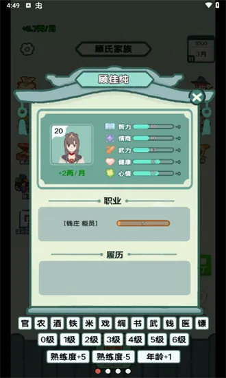 3. 设有丰富多样的玩法,如家族婚配、生育环境建设、情感互动活动等,还提供多种职业选择,融合策略经营与模拟养成元素,玩家能充分发挥策略智慧,书写独特古代篇章。