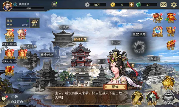 2. 多样玩法:有攻城战、事件、歼灭战、千里行、演义堂、宝物合成等玩法。比如攻城战能获取银币,千里行可挑战高难度关卡获丰厚奖励。