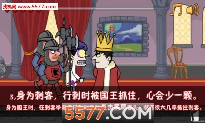 这是一款超有趣的休闲益智游戏。其画面卡通有趣,玩法独特,玩家扮演刺客刺杀国王后自己称王,过程中要防他人刺杀。游戏特色十足,有上千种国王死法,角色形象五花八门,剧情另类搞笑又带感,国王行走动画魔性。操作简单易上手,玩家能充分享受刺杀与防守的乐趣,在权术斗争中展现智慧,体验多样结局,解锁丰富剧情,是一款能让人爆笑解压、轻松愉悦的佳作,非常值得一玩。