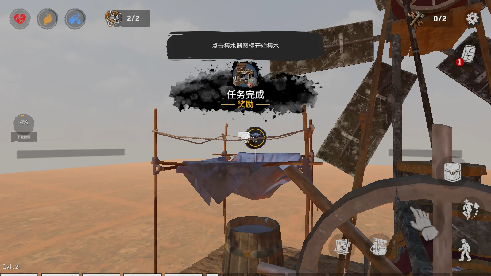 2. 资源收集与工艺:建造机器提取水和食物,制造衣物与材料强化木筏,从沙地挖掘资源,否则可能付出代价。