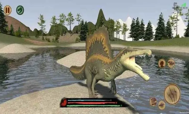 2. 置身充满危险的丛林,与巨大食肉动物和外来植物共处,追捕食物、对抗激烈BOSS,如棘龙。