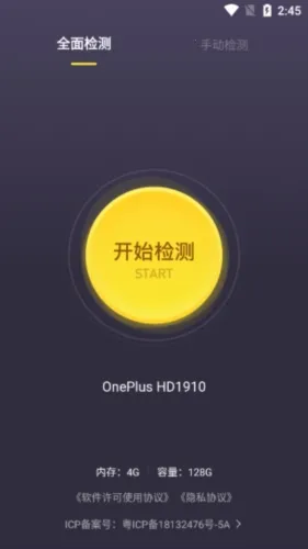 1、下载安装软件,可通过全面检测以及手动检测两种模式检查手机